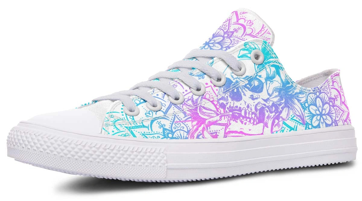Embrace a unique aesthetic with the Lily Flower Skull Lowtop Sneakers, a masterful blend of feminine floral elegance and bold gothic skulls. These sneakers are designed for those who appreciate artistic contrast, featuring high-definition prints of lilies and skeletal accents. The low-profile silhouette provides a versatile look that pairs perfectly with casual denim or skirts. Crafted with premium materials for breathable comfort, these shoes are as functional as they are fashionable. Walk with confidence in footwear that reflects your multifaceted personality and love for edgy design.