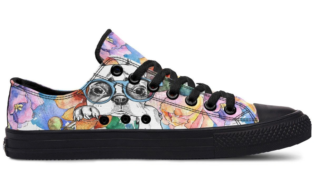 Stand out from the crowd with these Quirky Dog in Glasses & Floral Low Top Sneakers! Featuring a hilarious and vibrant pattern of dogs wearing spectacles amidst a garden of colorful flowers, these shoes are guaranteed conversation starters. Designed with lightweight materials and a flexible sole, they offer all-day support for your busy lifestyle. Whether you’re heading to a casual brunch or a park stroll, these sneakers deliver both humor and high-fashion vibes. Upgrade your sneaker game with this playful, durable, and exceptionally comfortable footwear choice today.